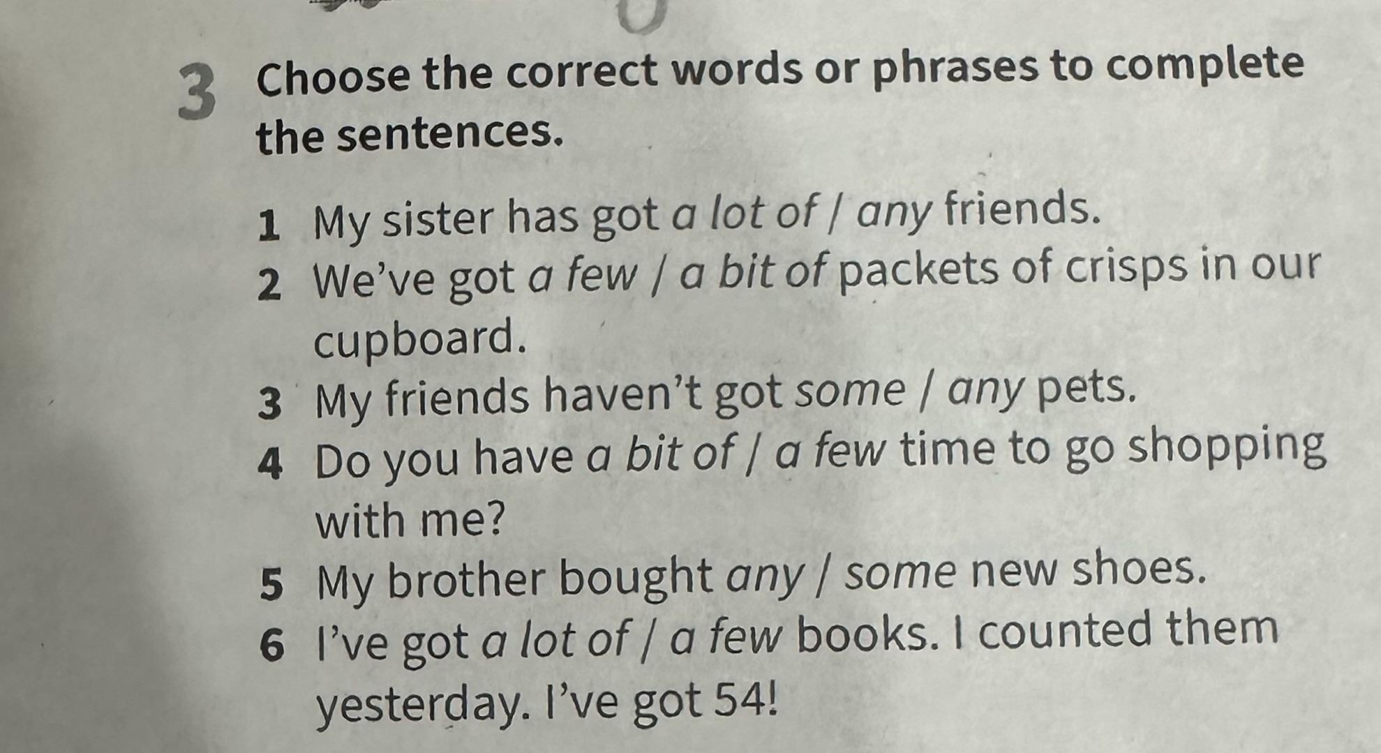 6. I've got a lot of books. I counted them yesterday. I've got 54!