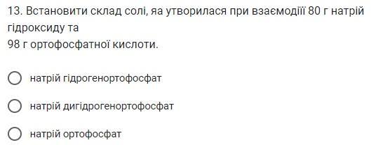 Установить состав соли, которая образовалась при взаимодействии 80 г гидроксида натрия и 98 г ортофосфатной кислоты.