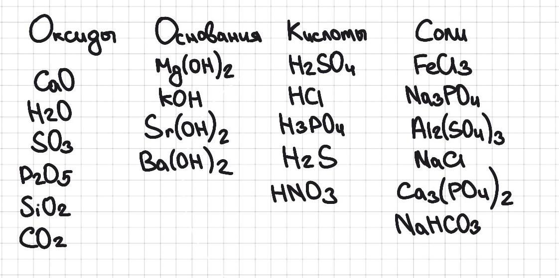NH3 – водородное соединение, Fe(OH)3 – амфотерный гидроксид (не основание).
