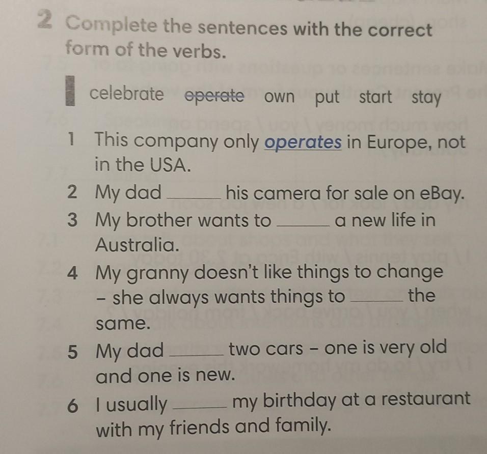 4) My granny doesn't like things to change - she always wants things to _____ the same.