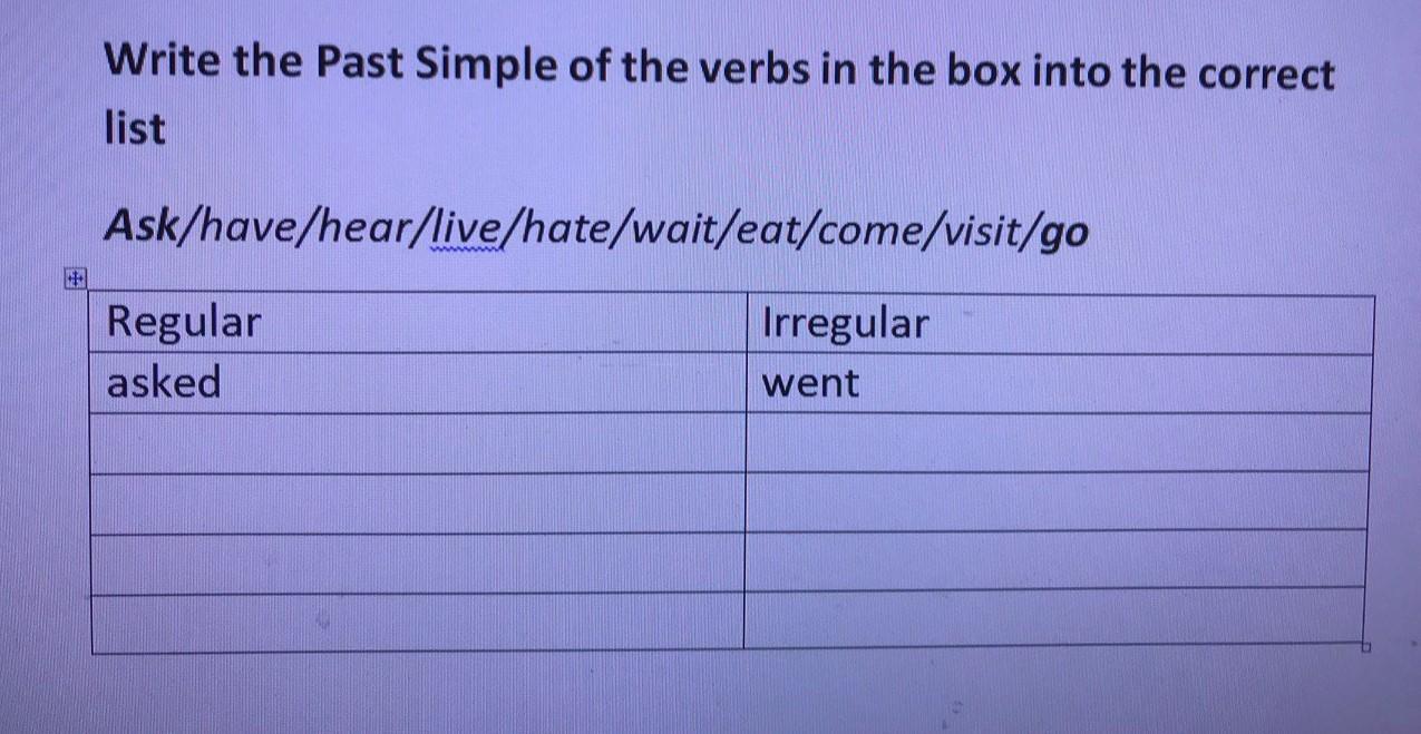 1.lived, hated, waited, visited 2. ate, came, had, heard