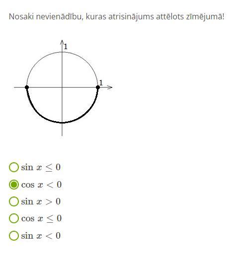 Т.к. выделена только нижняя часть окружности, включая концы, в которой синус отрицателен или равен нулю, то подходит первый вариант ответа ()