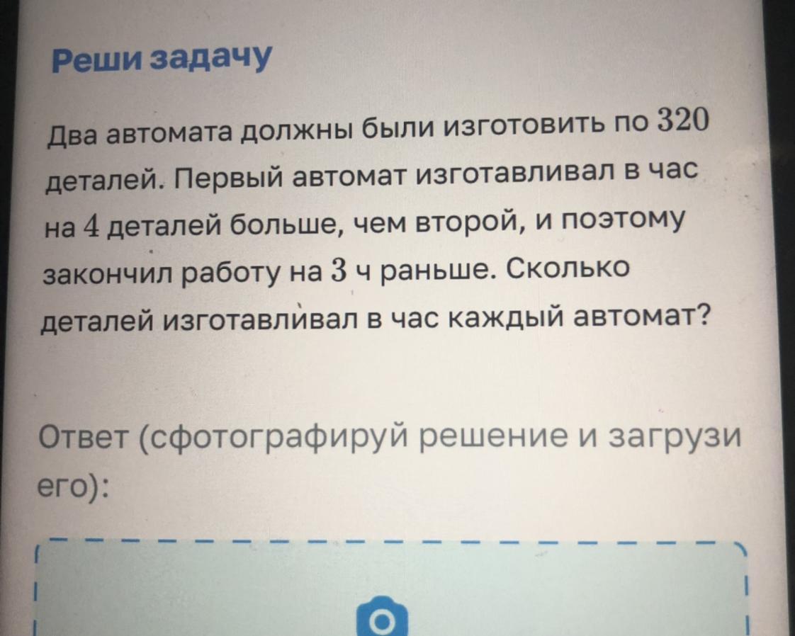 Позначимо через x скорость производства деталей вторым автоматом. Тогда скорость производства первым автоматом будет равна (x+4) деталей в час.