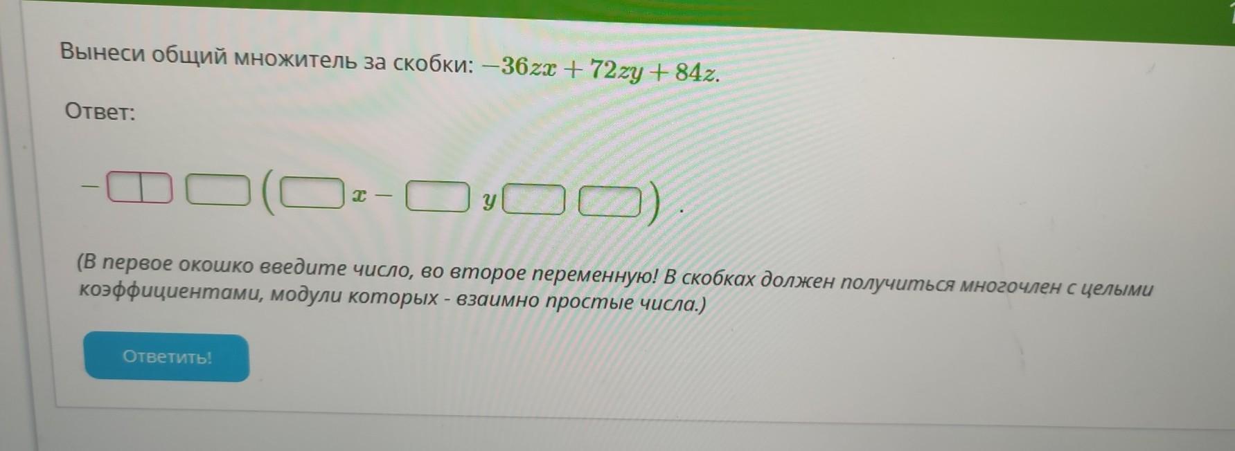 -36zx + 72zy + 84z = -12z(3x-6y-7).