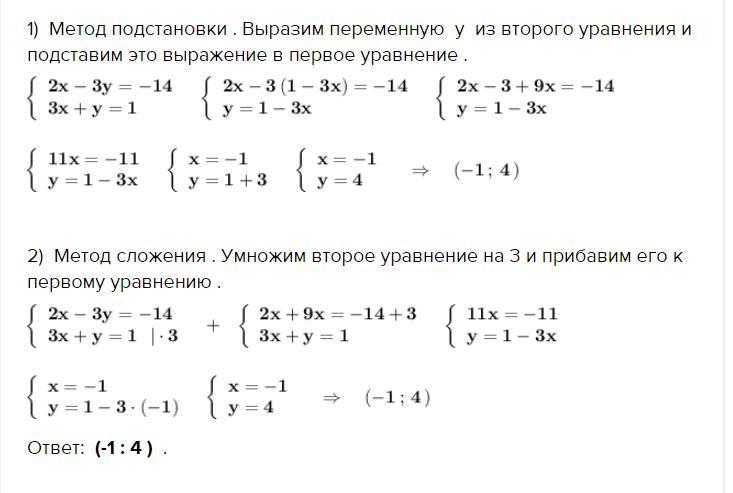1) Метод подстановки . Выразим переменную у из второго уравнения и подставим это выражение в первое уравнение .