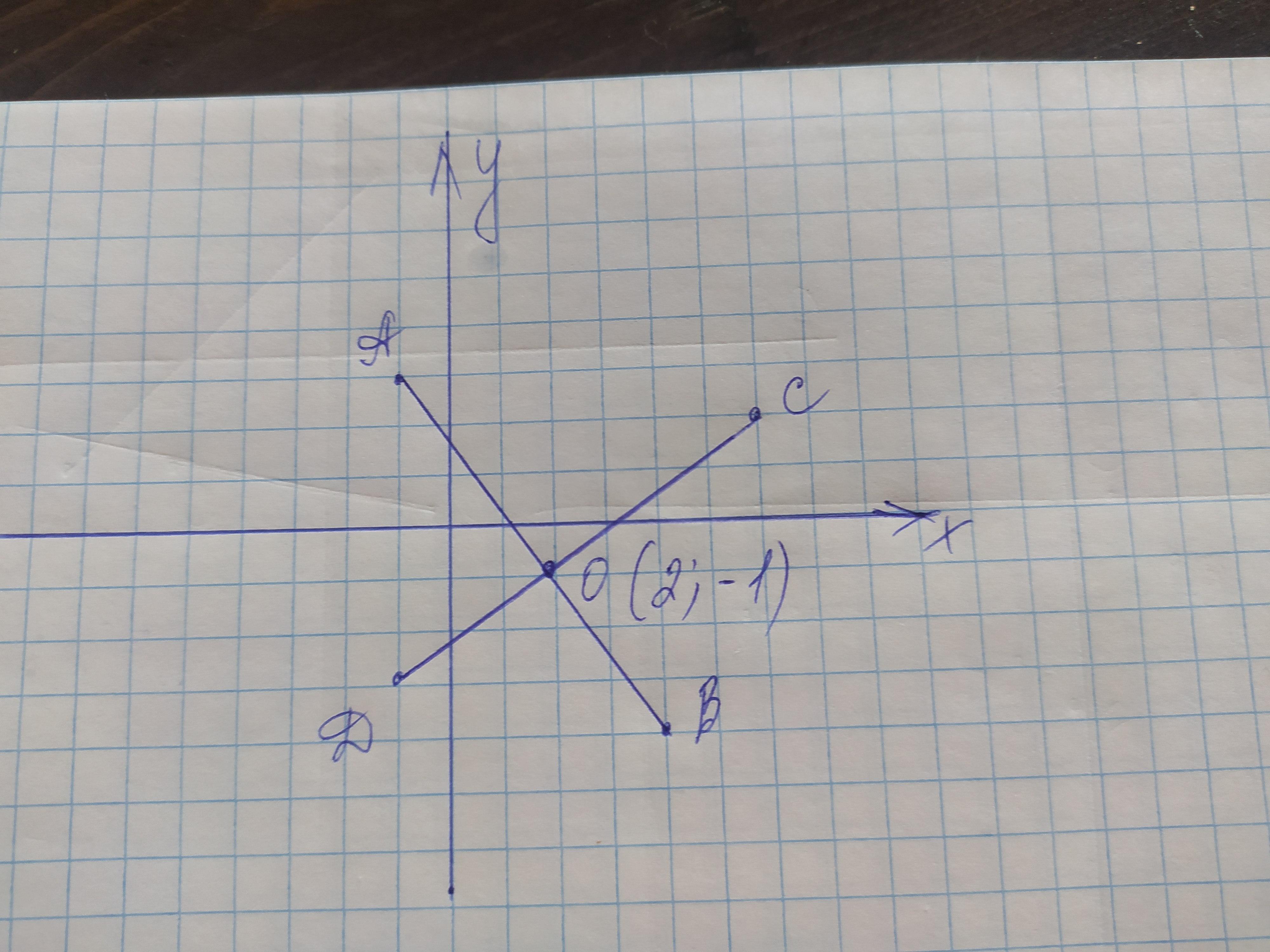 1. Позначте на координатній площині точки А(-1; 3), B(4; -4), C(6; 2), D(-1; -3). Проведіть прямі AB і CD, знайдіть координати точки перетину цих прямих.