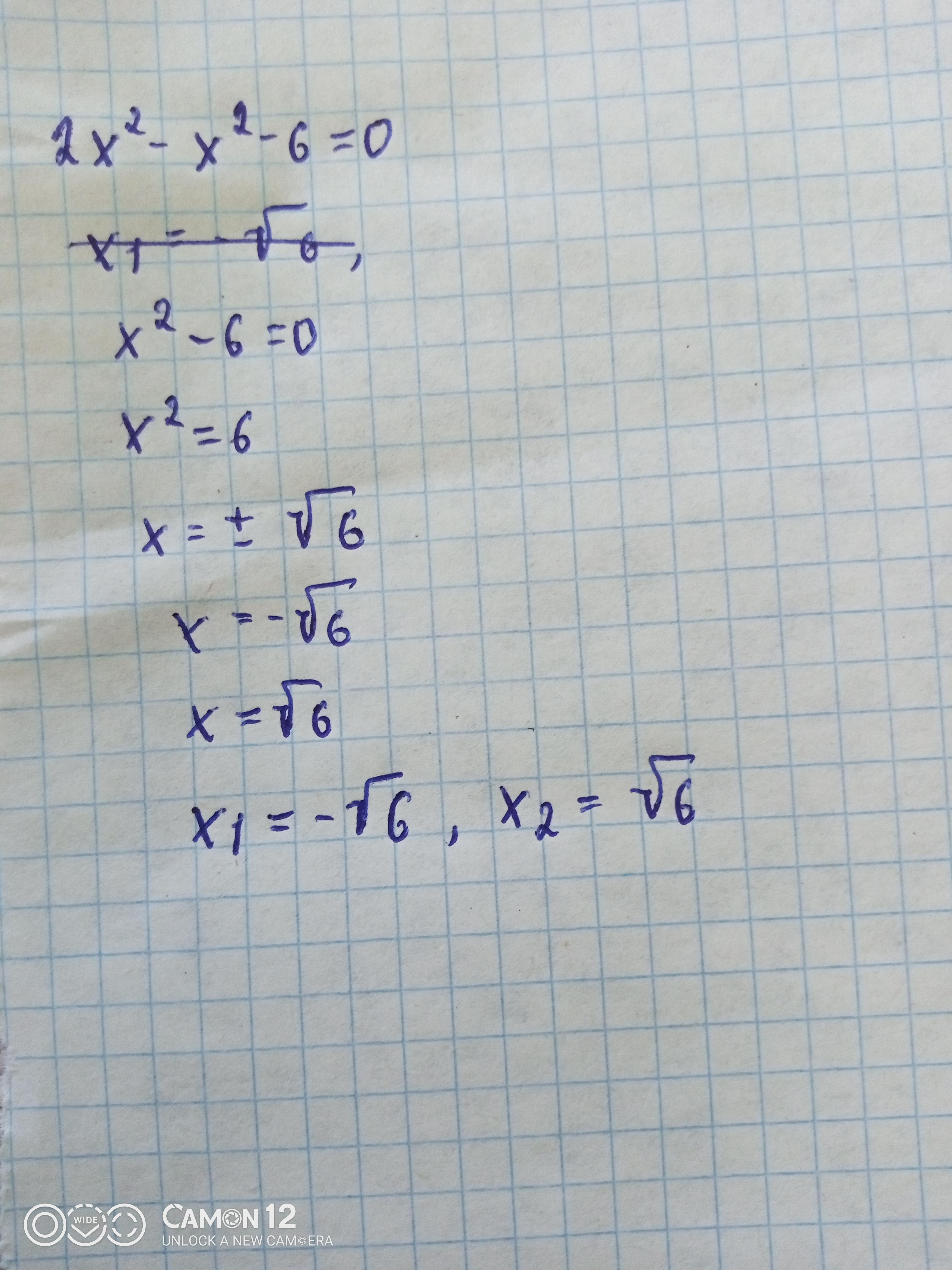 Розв'яжіть рiвняння 2х²-х²-6=0