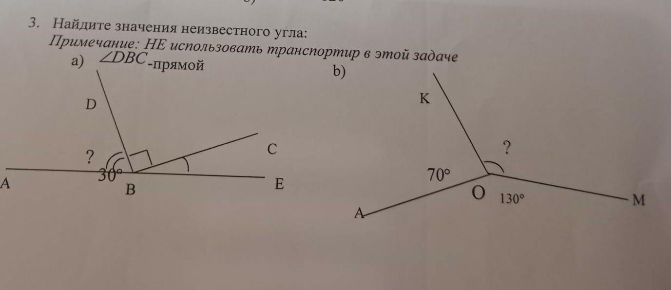 A 3. Найдите значения неизвестного угла: Примечание: Не использовать транспортир в этой задаче пж помагите