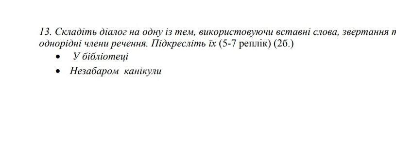 13. Складіть діалог на одну із мем, використовуючи вставні слова, звертання та однорідні члени речення. Підкресліть їх (5-7 реплік) (2б.) ● У бібліотеці Незабаром канікули ●