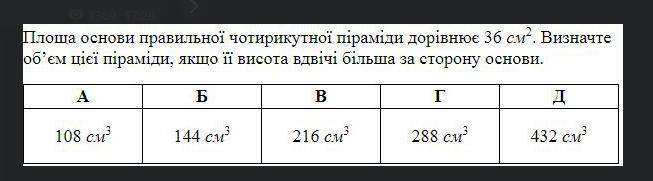 V=1/3•a²•H=1/3•6²•12=144 см³