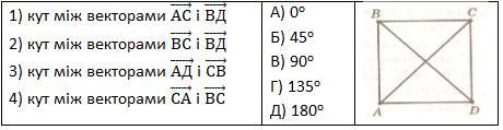 На рисунку зображено квадрат АВСД. Установіть відповідність між кутами (1-4) та градусними мірами цих кутів (А-Д). Решите пожалуйста с полным решением, буду очень благодарен!