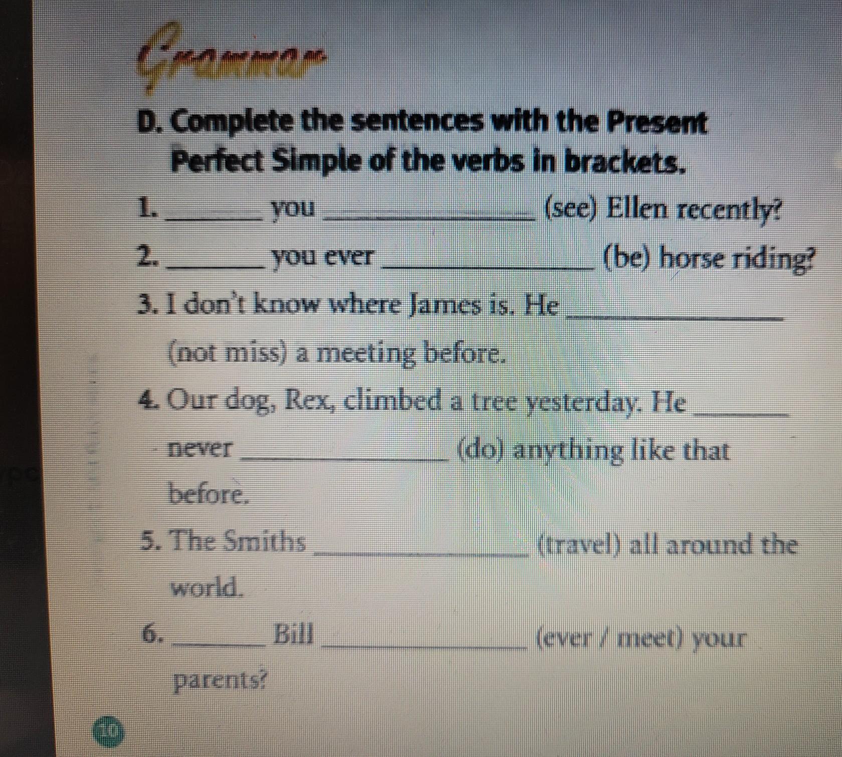 4)Our dog, Rex, climbed a tree yesterday. He had never done anything like that before.