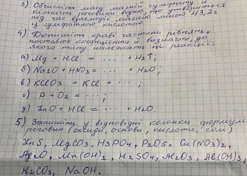 Солі: ZnS, MgCO3, Cu(NO3)2