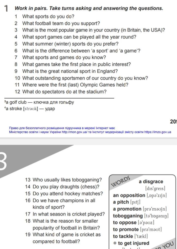 3. In my country the most popular is football, in Britain it’s football too, in USA it’s American football.