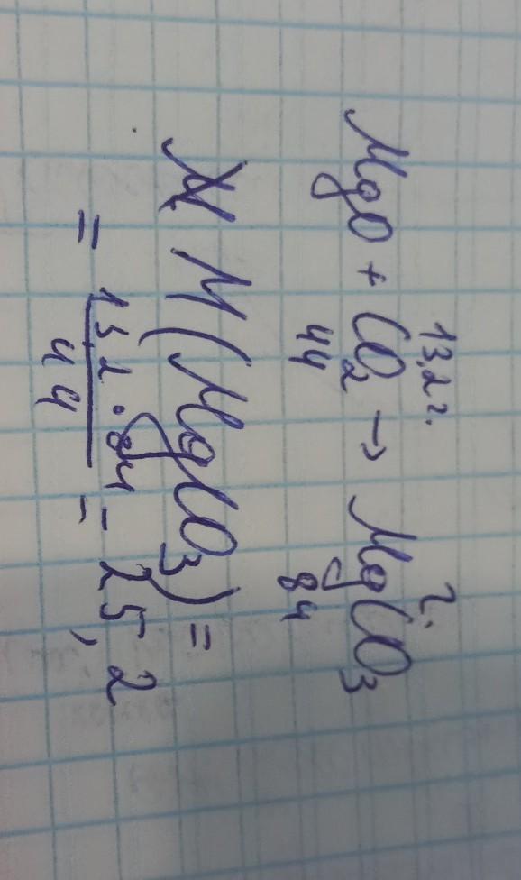 8. Масса карбоната магния, образующаяся при взаимодействии оксида магния с 13,2 г оксида углерода (IV): а) 15,6 г ь) 25,5 г c) 27,72 г Решение прилагаемся!!! d) 36,8 г [2 балла]