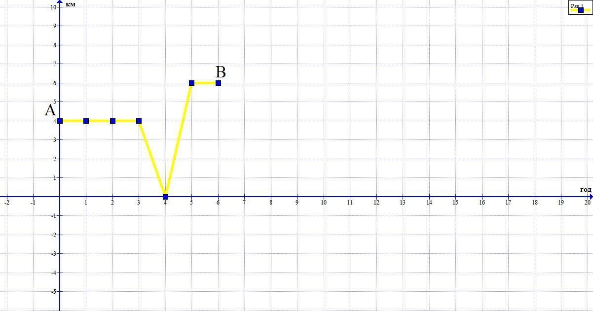 Турист вийшов з пункту А в пункт В. Спочатку він ішов 2год зі швидкістю 4 км/год, а потім 3 год відпочивав, після цього йшов ще 3 год зі швидкістю 2 км/год і прибув у пункт В. Складіть таблицю та побудуйте графік руху туриста.