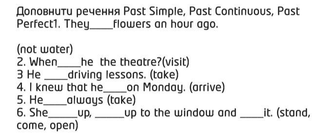1he didn't water the flowers an hour ago