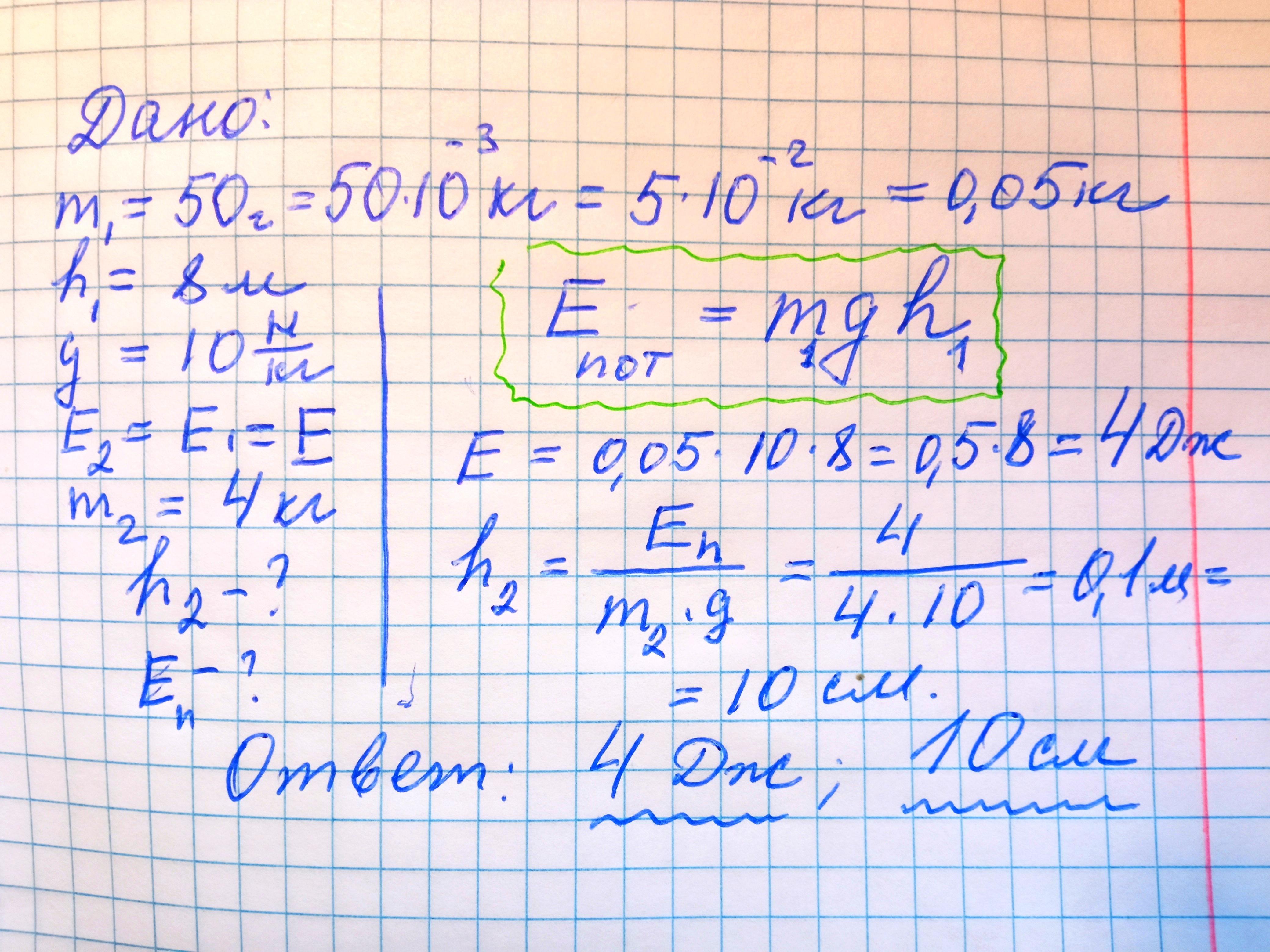 Шарик массой m¹-50г находится на высоте h¹-8 м от поверхности земли. Ускорение свободного падения считать равным g-10 Н/кг