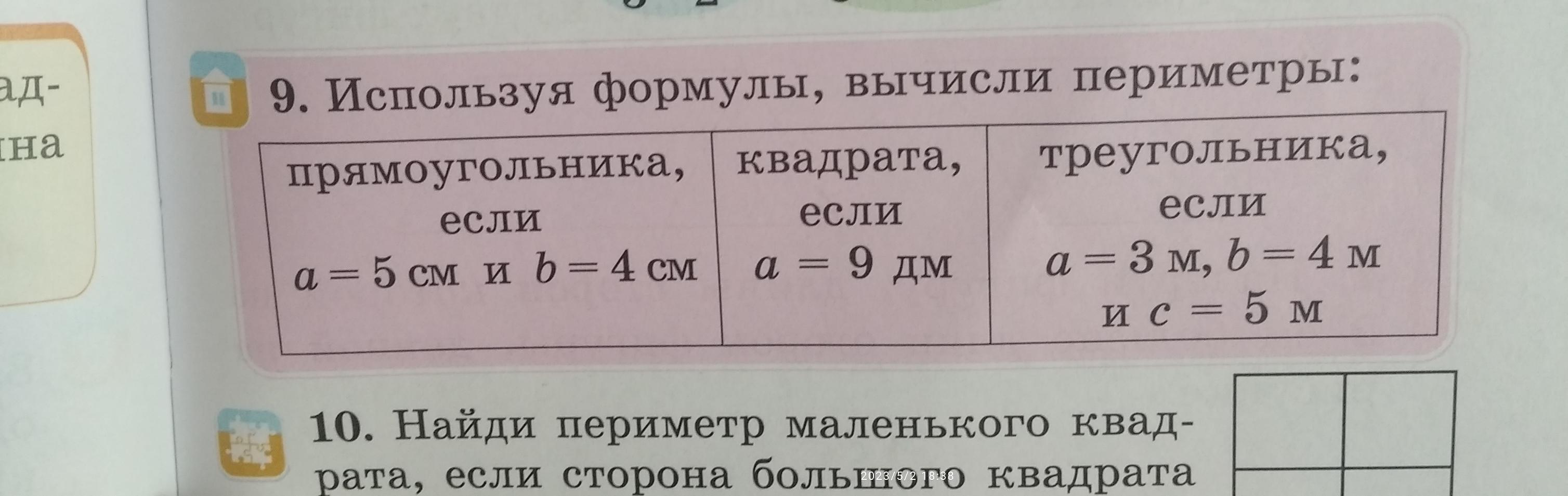 кароче вот формула прямо угольник мы сначала узнаем все стороны вместе и потом умножаем на два квадрат мы просто умножаем на 4 потому что у него 4 одинаковых сторон а треугольник просто все стороны слаживаем если будут вопросы пишите