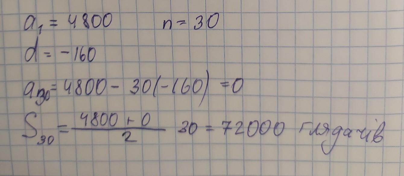 30*4800-160⋅30⋅(30−1)2=30⋅4800−160⋅435=30⋅4800−160⋅ 230⋅(30−1)=30⋅4800−160⋅435=138000