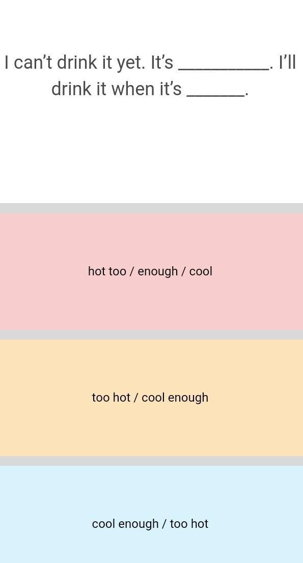 i can't drink it yet . it's too hot.I'll drink it when it's cool enough