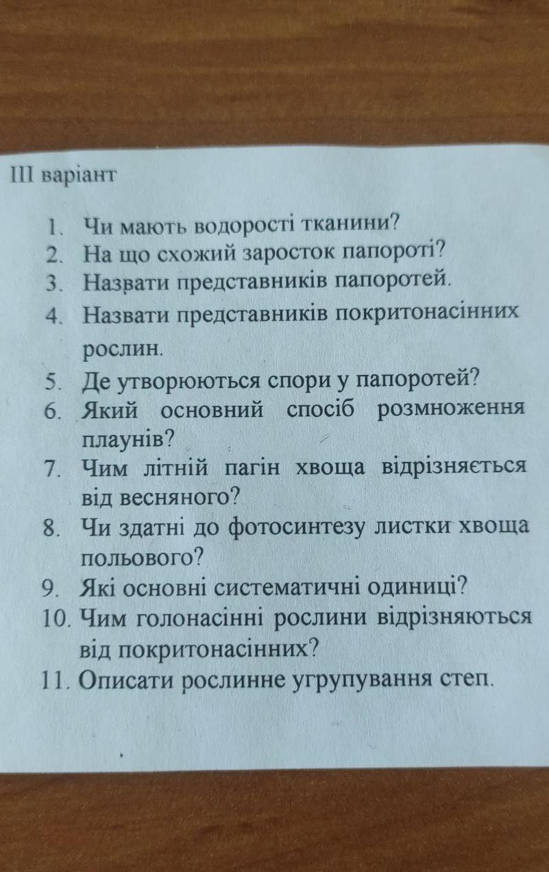 Пояснення: я знаю відповіді тільки на шість запитань,надіюсь що хочаб чимось допомогла