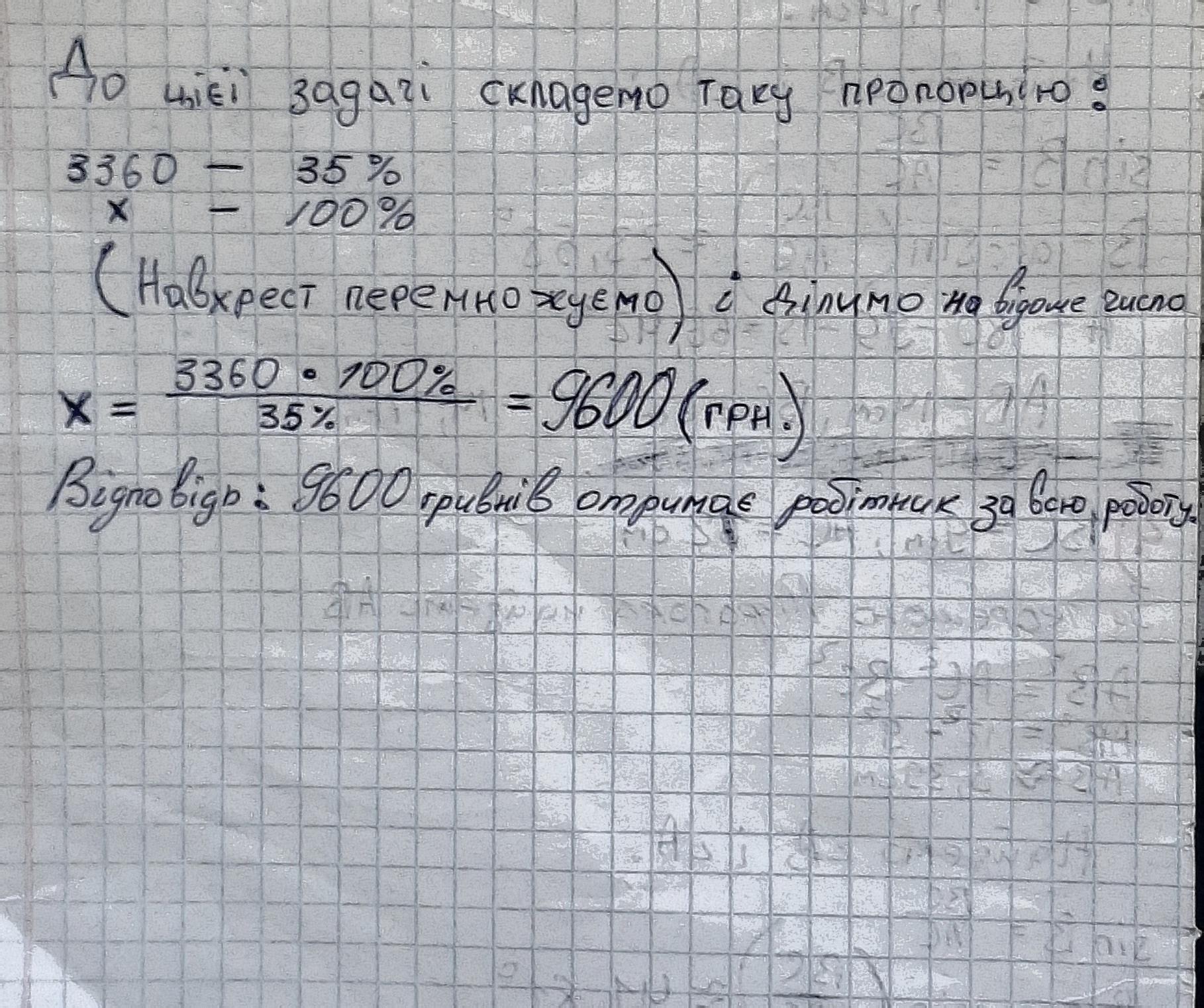 3360 грн становить 35% суми, а 100% суми нам невідомо(х)