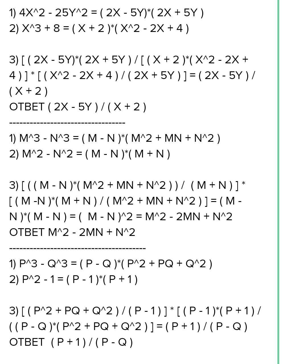 4) 3 p² + pq+q². p³-q³ 2 p-1 p²-1