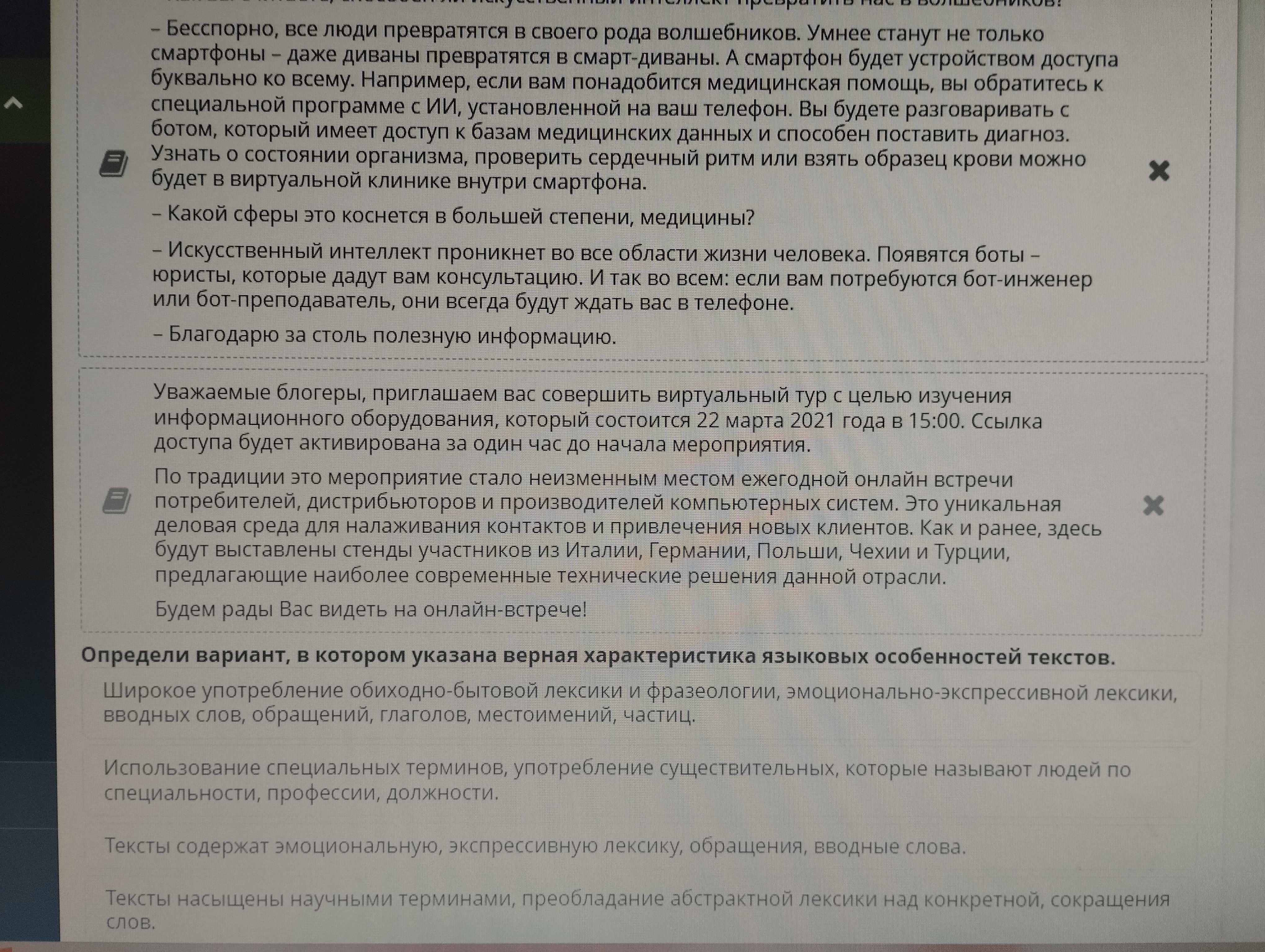 7)Текст А – интервью (публицистический стиль), текст В – письмо- приглашение (официально-деловой стиль).