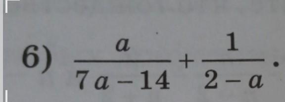 \displaystyle\\\frac{a}{7a-14}+\frac{1}{2-a}  =-\frac{a}{7(2-a)} +\frac{1}{2-a} =\frac{7-a}{7(2-a)}