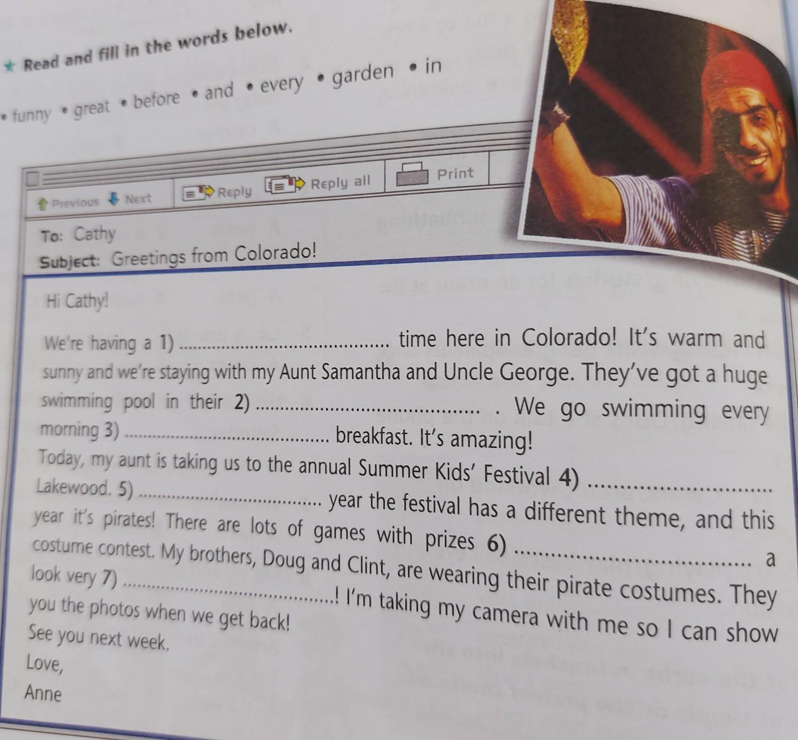 1) great 2) garden 3) before 4) in 5) every 6) and 7) funny.