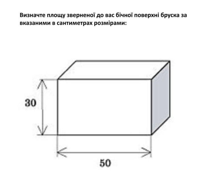 Визначте площу зверненої до вас бічної поверхні бруска за вказаними в сантиметрах розмірами
