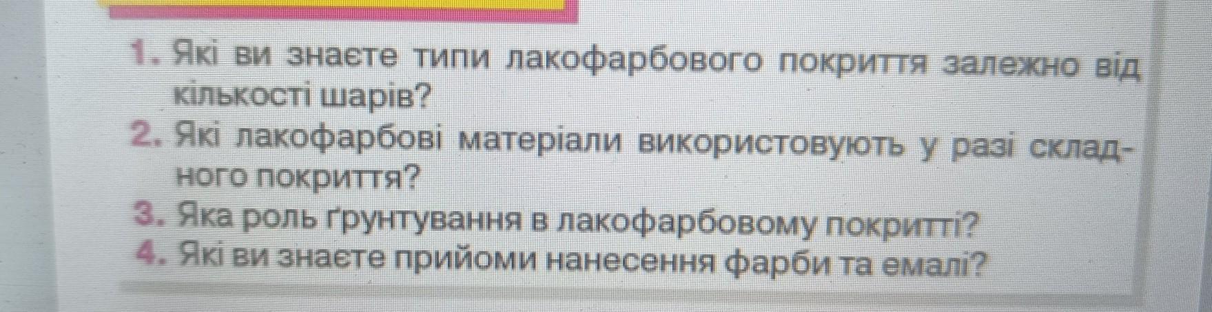 1. Залежно від кількості шарів, можна виділити три типи лакофарбового покриття: одношарове, двошарове та багатошарове.