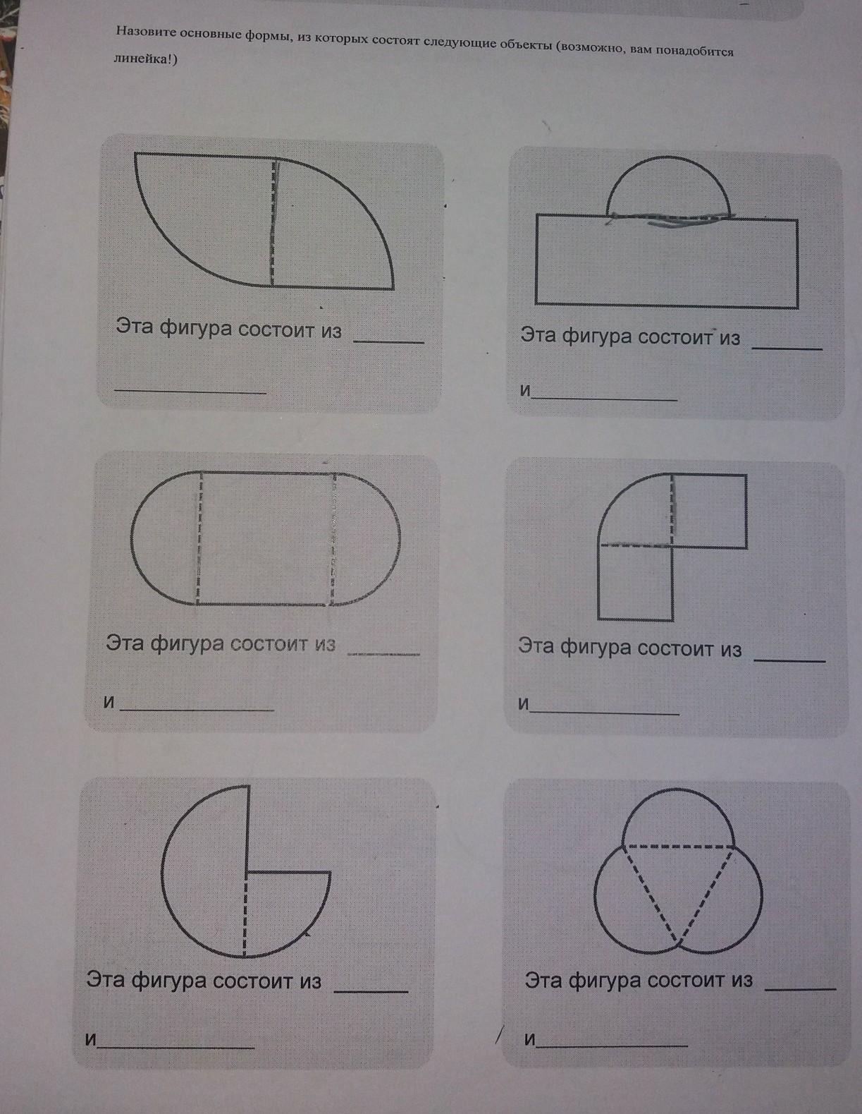 2) З прямокутника і половини кола або з кола.
