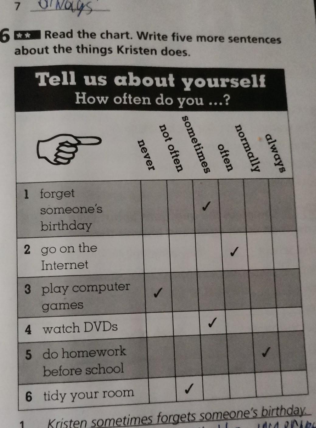 5.Kristen normally do homework before school