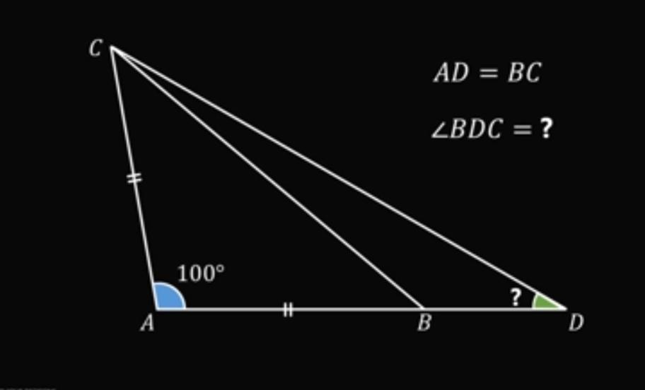 В треугольнике ∆АВС, АС=АВ, ∠A=100°, сторону АВ продолжили до такой точки D, что AD=BC. Найдите угол ∠D.