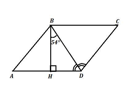 ABCD - ромб . ВН ⊥ AD , ∠DBH=54°