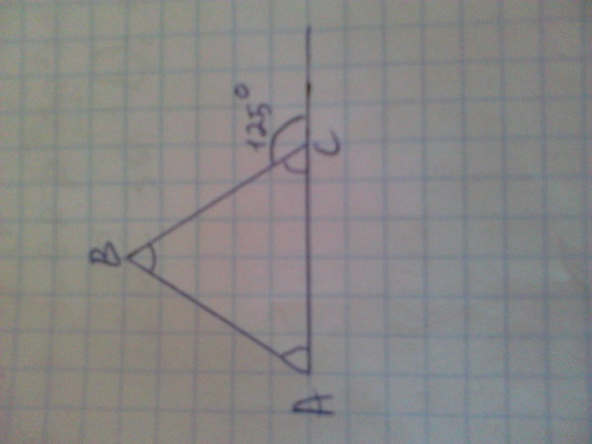 дан равнобедренный треугольник АВС ,внешний угол = 125 градусам