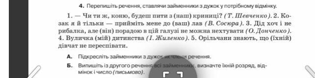 Ответ: 1. нашої, 2. ваших, 3. його, 4. мого, 5.