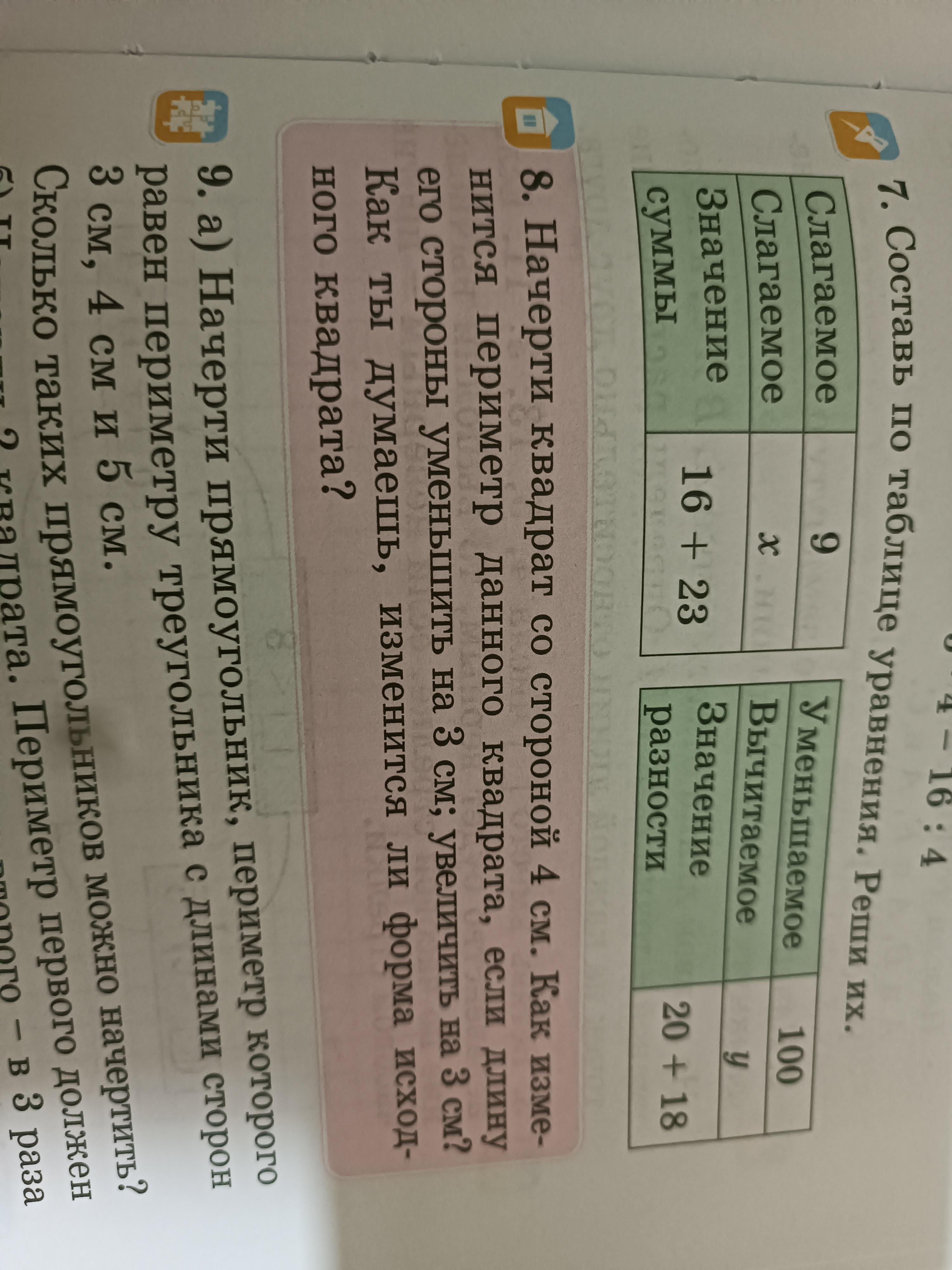Начертите квадрат стороной 4см.как изменится периметр данного квадрата если длину его стороны уменьшится на 3см увеличить на 3 см? Как ты думаешь изменится ли форма исходного квадрата