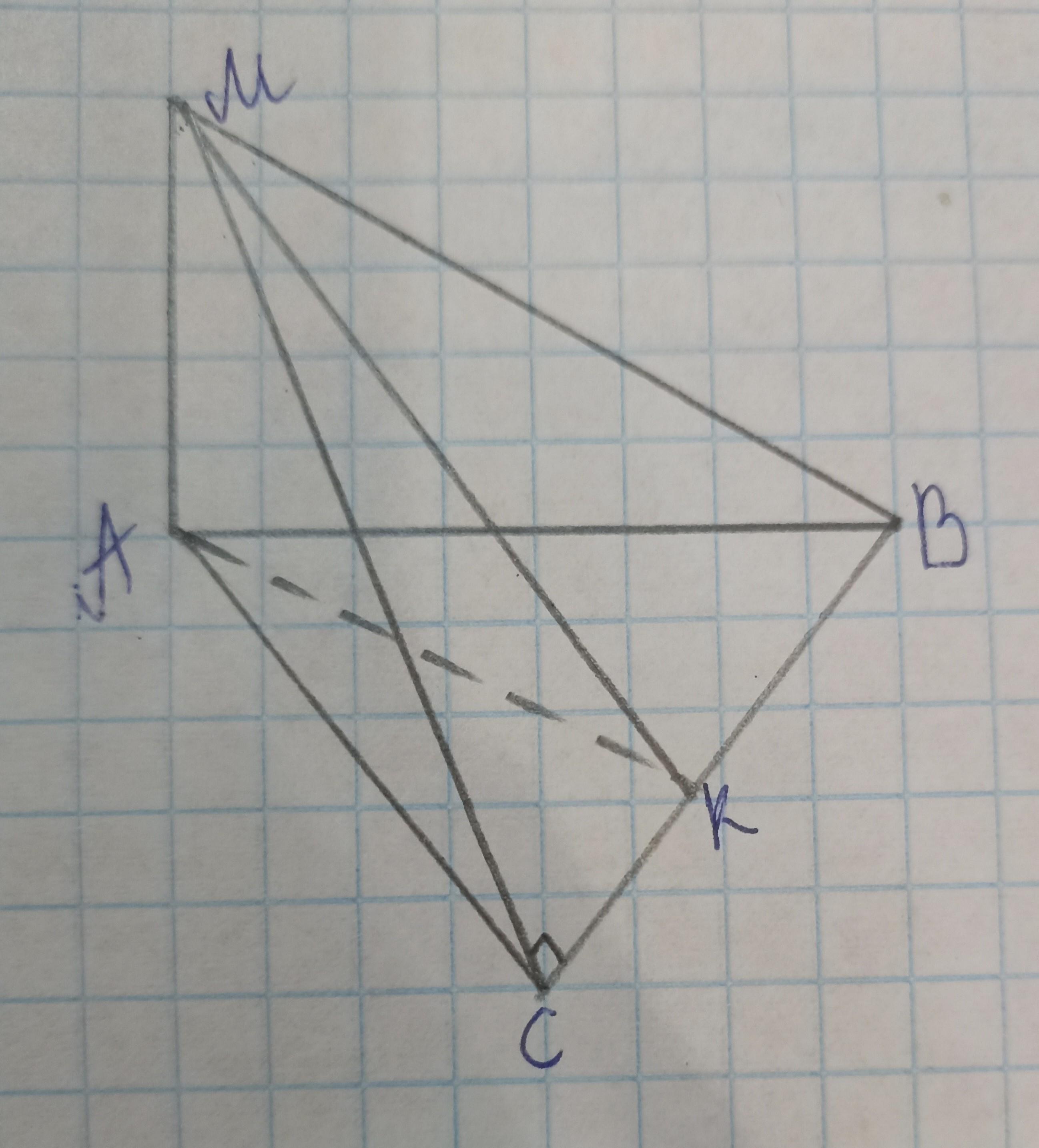 1. Трикутник АВС - прямокутний із прямим. кутом С. Через точку А проведено перпендикуляр АМ до площини трикутника. Який відрізок є відстанню між прямими АМ і СВ?