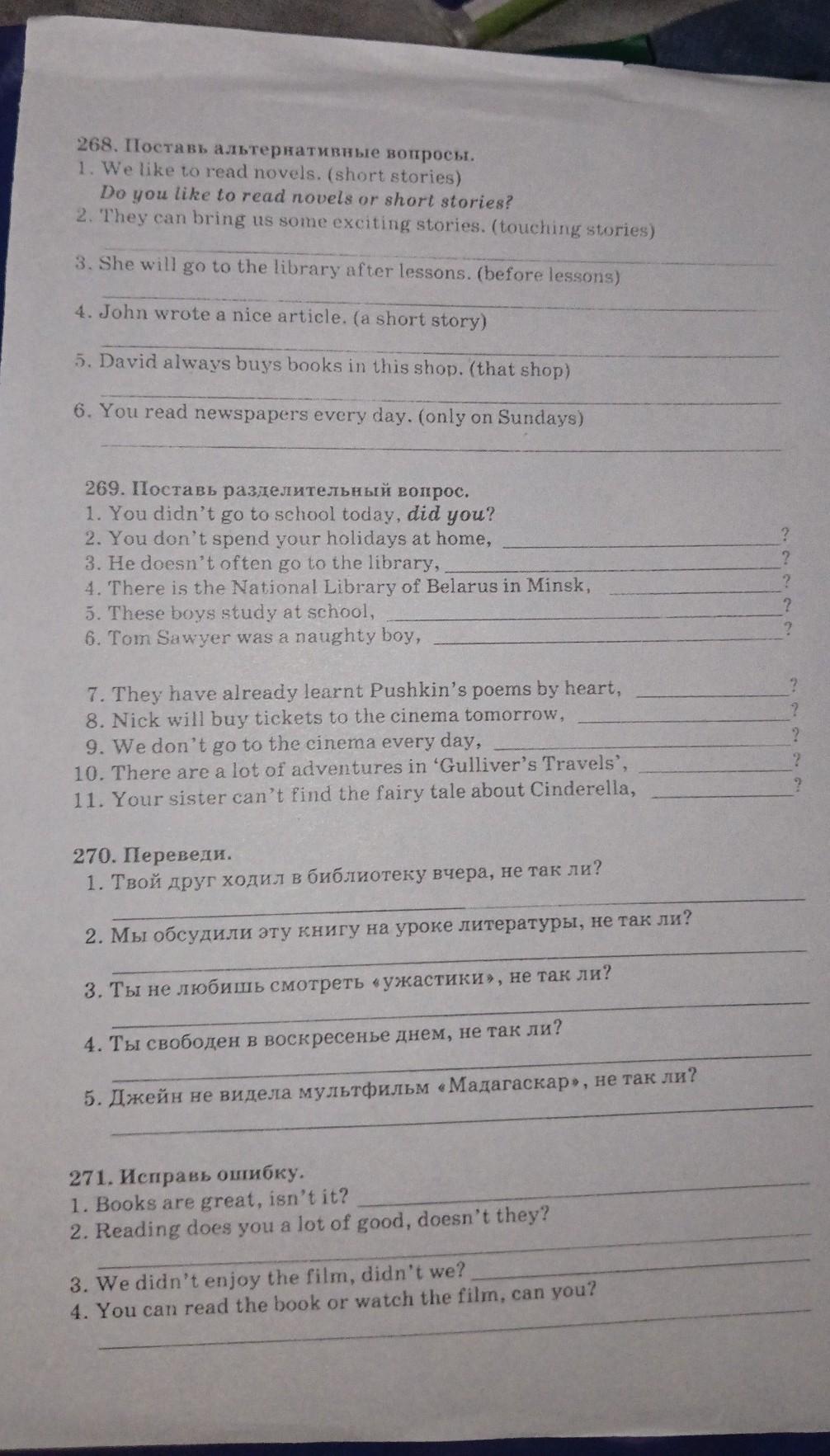 1. Your friend went to the library yesterday, didn't he?