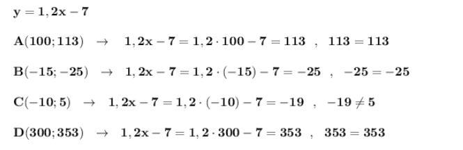 в ) C (- 10; 5 ) : 5 = 1,2 * (- 10 ) - 7 ; - неправильна рівність
