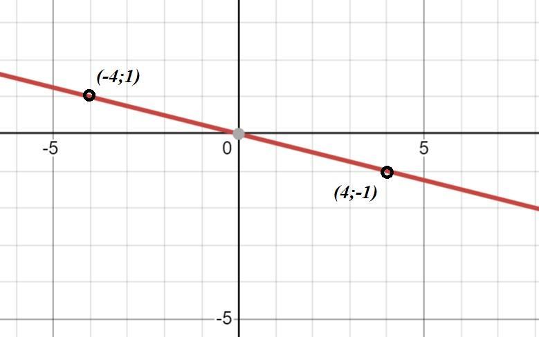 График функции y=-1/4x проходит через начало координат O(0;0) поэтому выбираем другие точки координатной плоскости