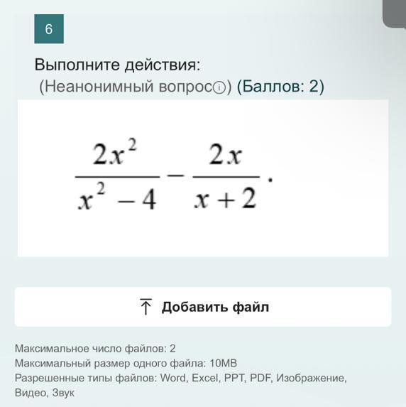 2x²/( x² - 4 ) - 2x/( x + 2 ) = [ 2x²- 2x( x - 2 ) ]/( x² - 4 ) = ( 2x² - 2x² +