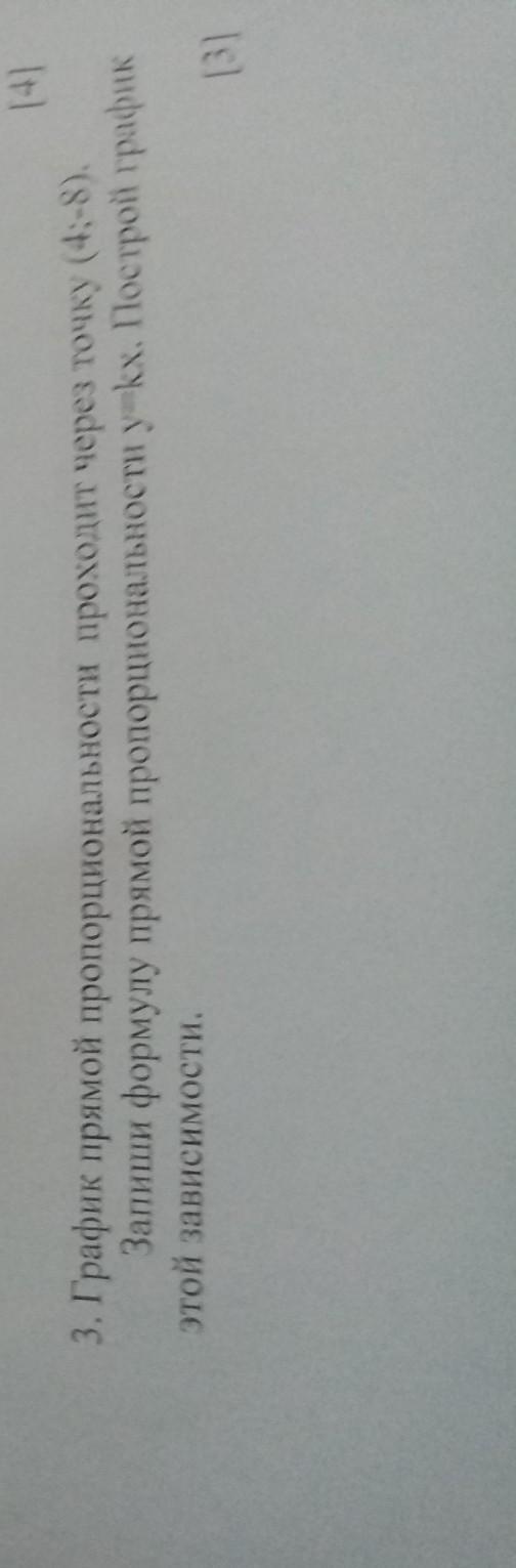 3. График прямой пропорциональности проходит через точку (4;-8). Запиши формулу прямой пропорциональности зависимости. у=kx. Построй график этой [3]