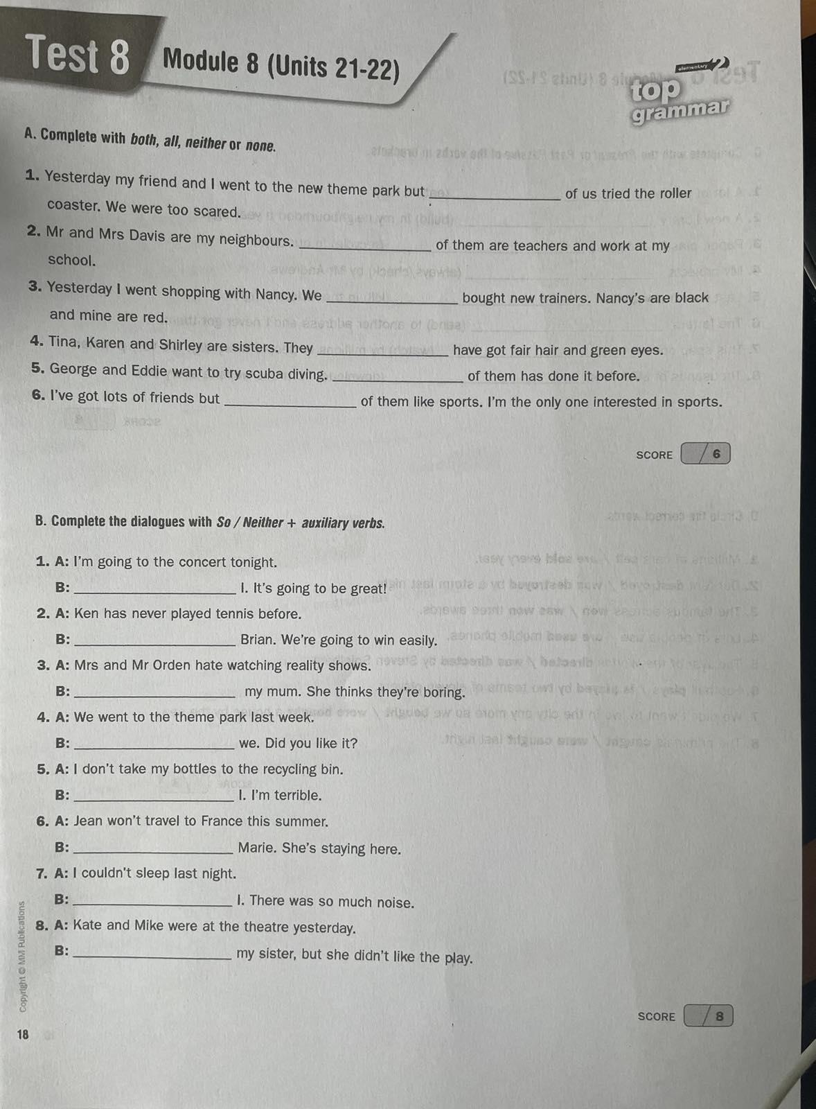 A: We went to the funfair last week. B: Did you like it? B: So did I. (So)