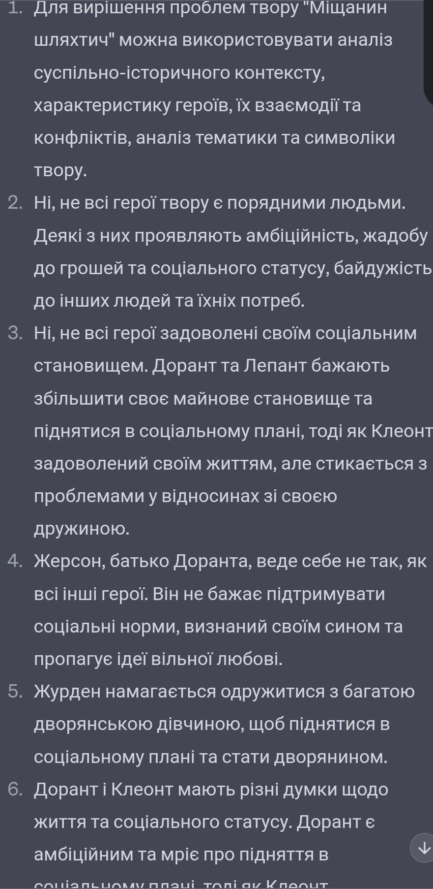 6. Хто його підтримує,а хто має свою власну думку? (Дорант і Клеонт ,також інші персонажі
