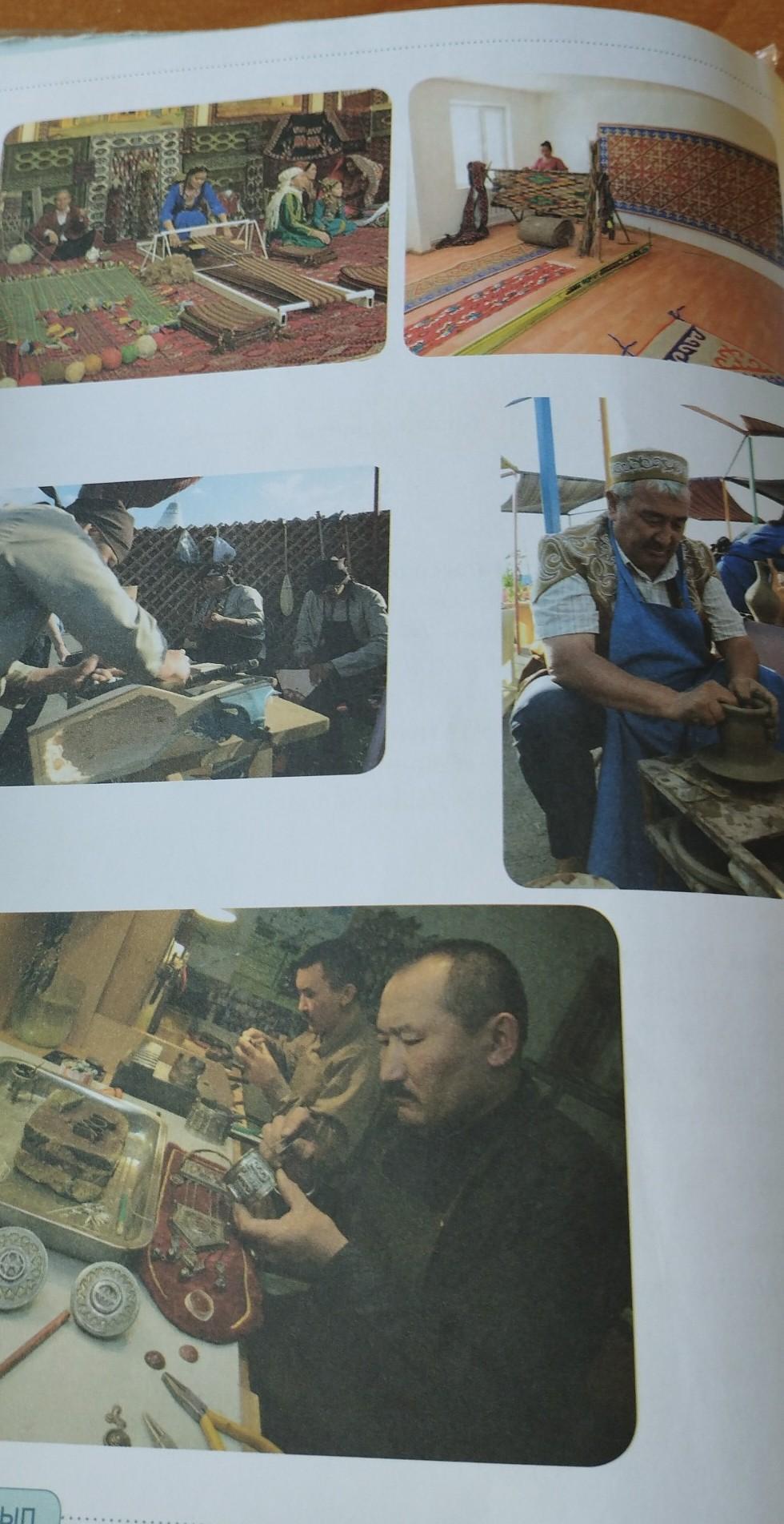 Бұл суретте біз атамыздың қазақтың ұлттық әшекейлерін құмыралар, ыдыс аяқтар кілем, көрпе жасап жатыр.
