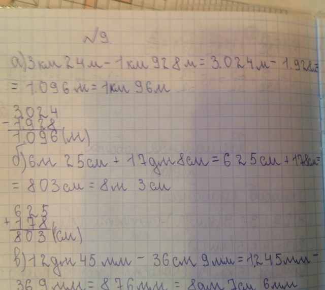 12 дм 45 мм-36 см 9 мм= 1245 мм-369 мм=876 мм или 8 дм 7 см 6 мм